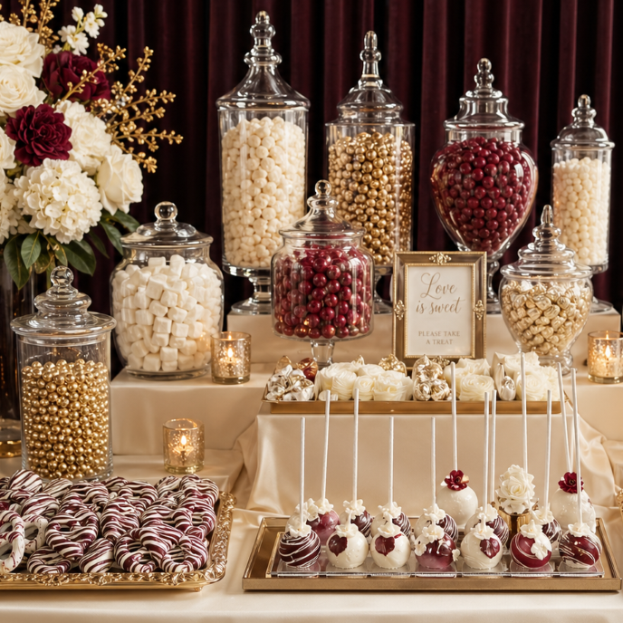 Choose from chocolate-covered pretzels, cake pops, rice crispy treat pops, custom confections, and our self-serve Candy Buffet  for guests who love a classic sweet treat.. Every treat is  handcrafted with premium ingredients, because royal quality should taste fresh, look beautiful, and leave a lasting impression.